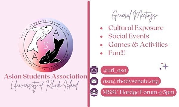 - Nov 4, 2025: ASA General Meeting at MSSC Hardge ForumOur general meetings for Asian Students Association. Follow our instagram page (@uri_asa) to get insight into what we are doing every meeting!! Visit URInvolved for complete event details. View on site | Email this event